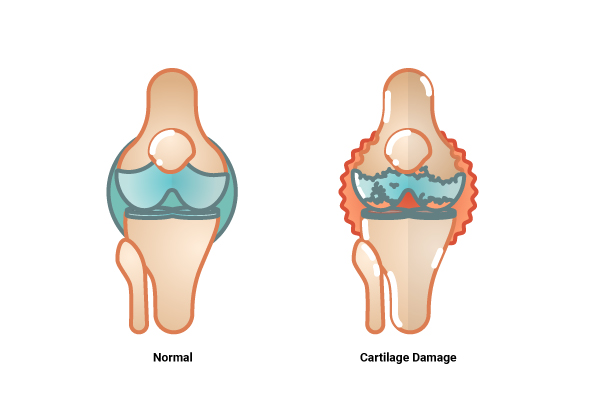 Cartilage is the fine, rubbery tissue that acts as a smooth moving surface across the joints and as a cushion between the bones. Its damage can lead to pain, swelling, and stiffness of the associated joint.