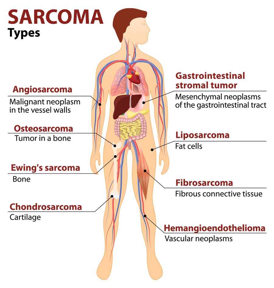 Soft tissues are the extra skeletal tissues of the body that surround organs and other anatomic structures. Soft tissues include muscles, fats, blood vessels, nerves, tendons and the lining of the joints. When these cells start to grow in a rapid rate, they may form lumps in some areas, which can lead to cancer of the soft tissues or sarcoma.