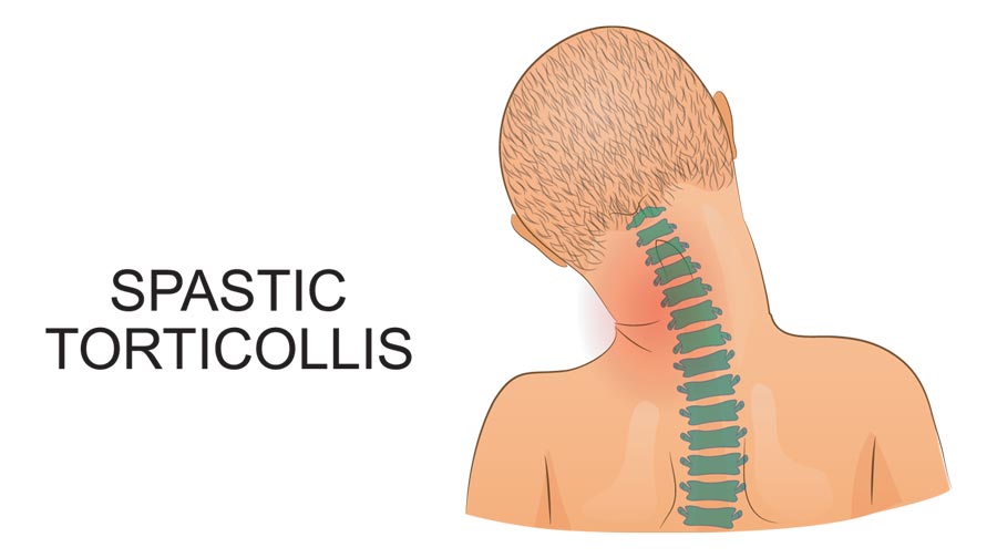 Torticollis or wry neck is a condition where the neck muscles twist beyond their usual capacity causing the head to rotate at an odd angle. This will lead to neck pain and stiffness, which is often accompanied by spasm of the surrounding neck muscles. The condition will restrict the normal range of motions of the neck. This condition can be congenital (present at birth) or acquired and is commonly seen in neonates.